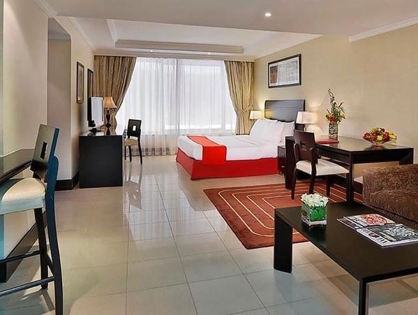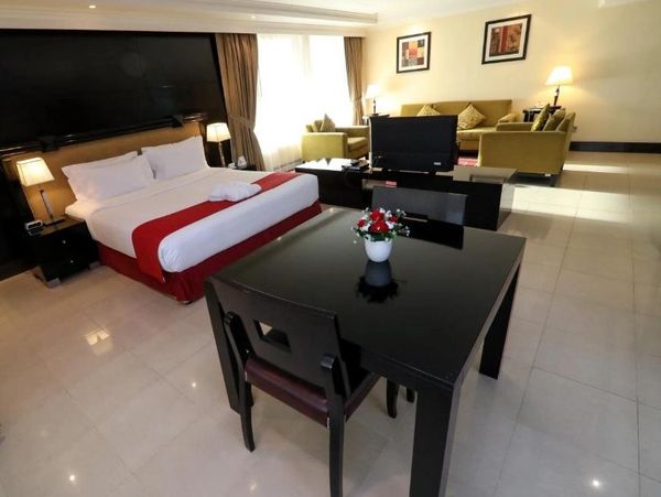 With a very comfortable size of 43 sqm, the Junior Suite of All Seasons Al Ain is fitted with a king size bed, a fully furnished living room, dining area and attached bathroom.