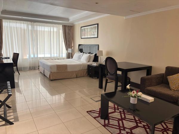 With a very comfortable size of 43 sqm, the Junior Suite of All Seasons Al Ain is fitted with a king size bed, a fully furnished living room, dining area and